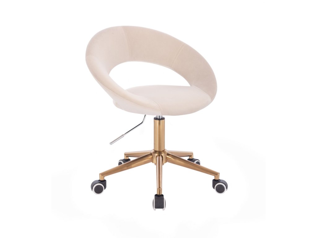 Židle NAPOLI VELUR na zlaté podstavě s kolečky - krémová