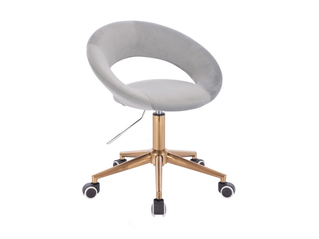 Židle NAPOLI VELUR na zlaté podstavě s kolečky - světle šedá