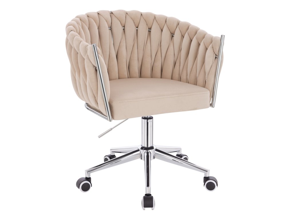 Židle NORDEN VELUR na stříbrné podstavě s kolečky - krémová