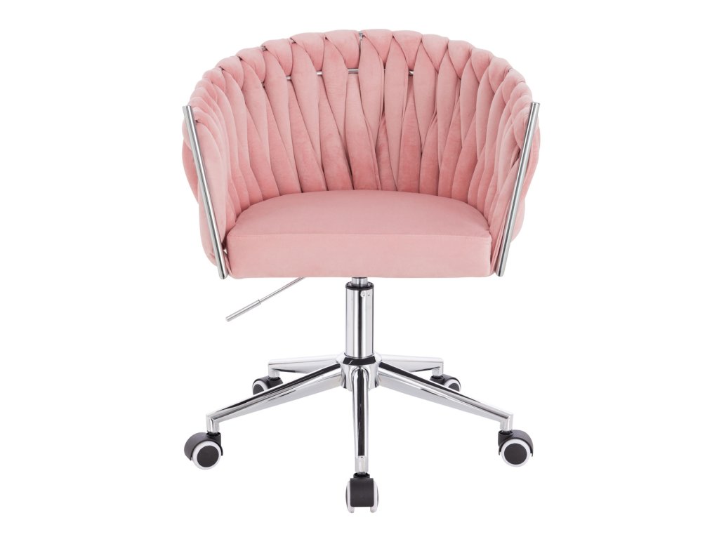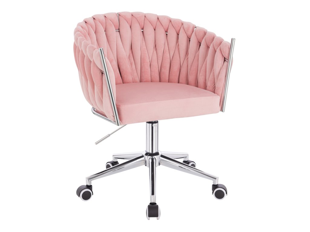 Židle NORDEN VELUR na stříbrné podstavě s kolečky - světle růžová