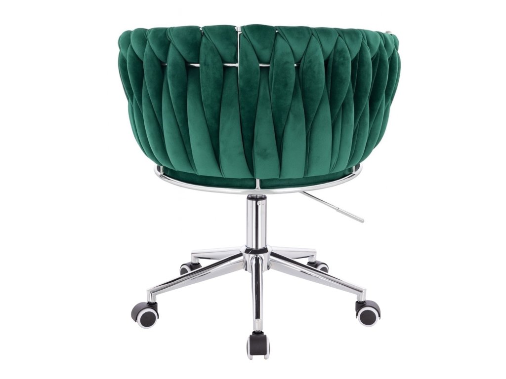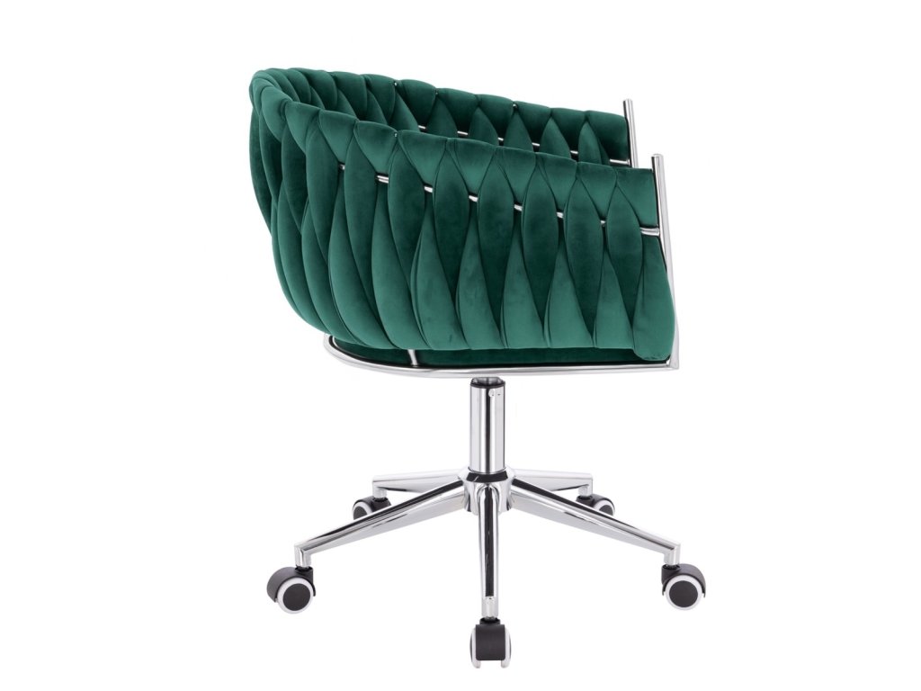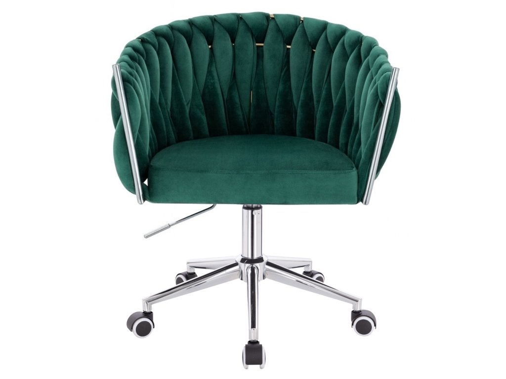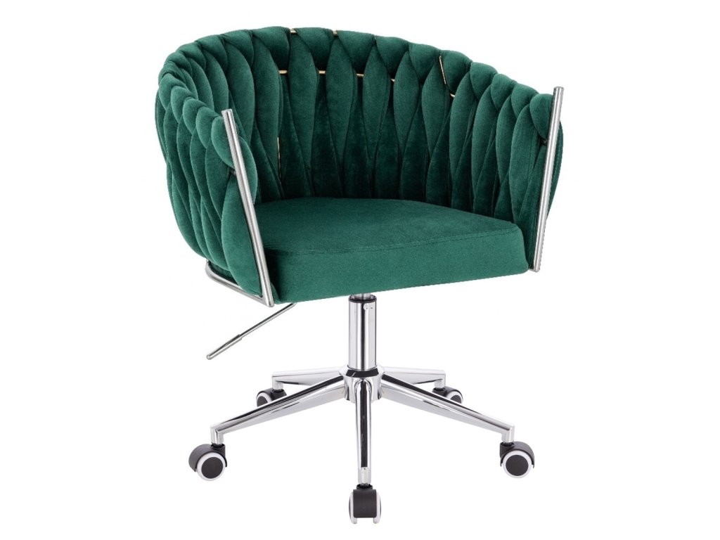 Židle NORDEN VELUR na stříbrné podstavě s kolečky - zelená