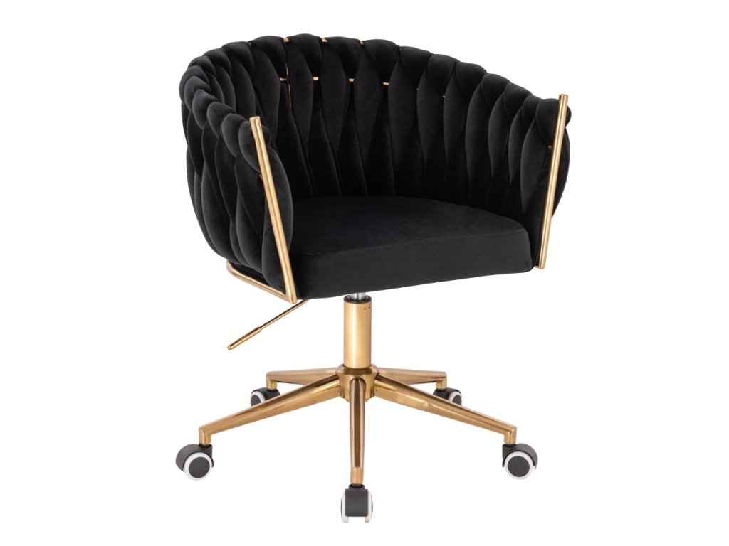 Židle NORDEN VELUR na zlaté podstavě s kolečky - černá
