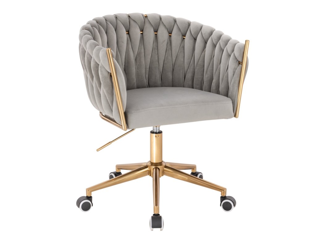 Židle NORDEN VELUR na zlaté podstavě s kolečky - světle šedá