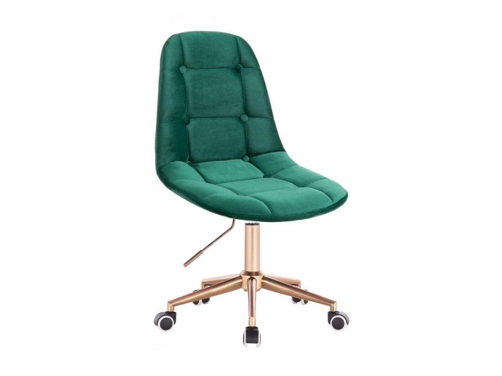Židle SAMSON VELUR na zlaté podstavě s kolečky - zelená