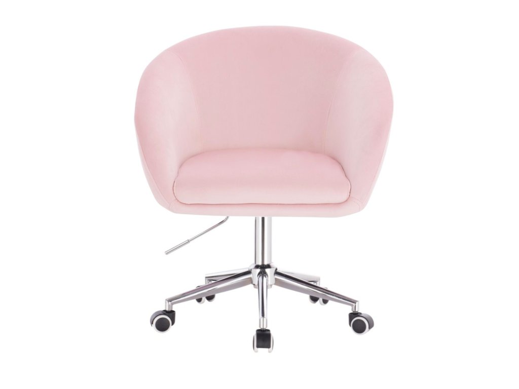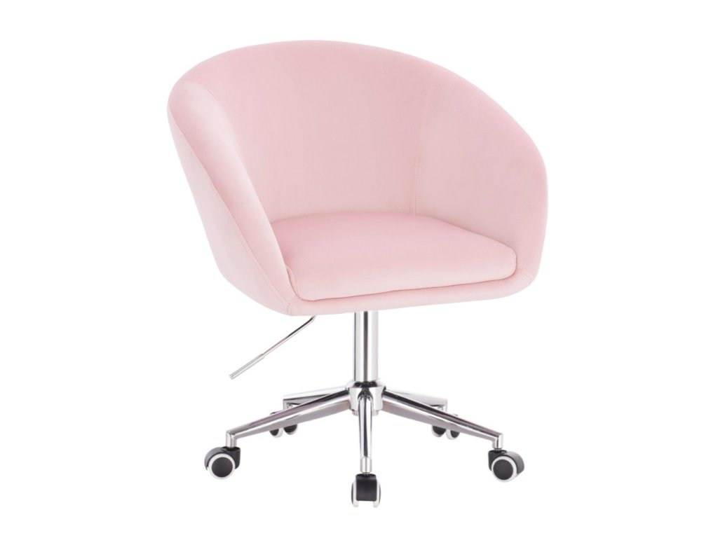 Židle VENICE VELUR na stříbrné podstavě s kolečky - světle růžová