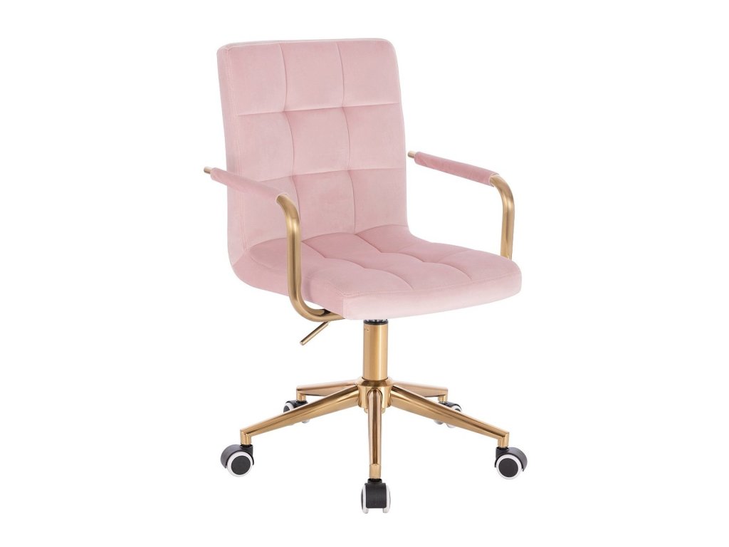 Židle VERONA GOLD VELUR na zlaté podstavě s kolečky - růžová