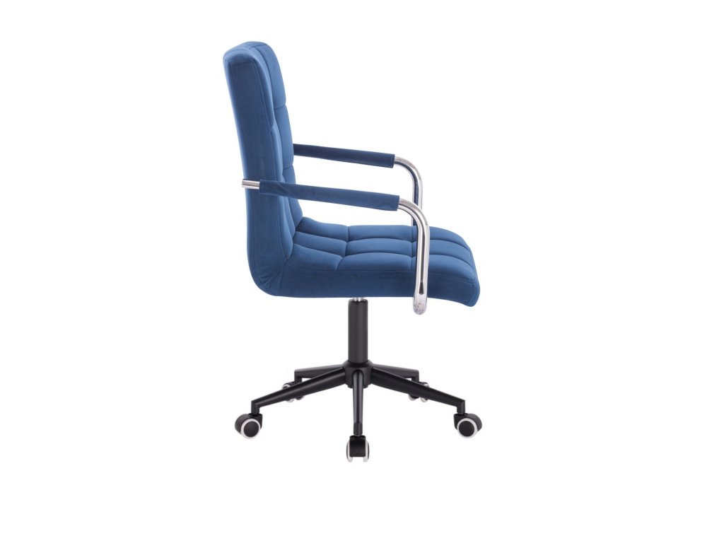 Židle VERONA VELUR na černé podstavě s kolečky - modrá