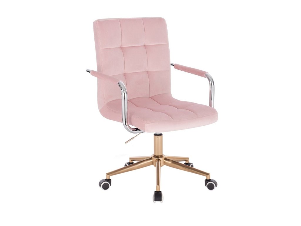 Židle VERONA VELUR na zlaté podstavě s kolečky - světle růžová